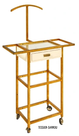 Sellette serviteur roulant en métal doré, travail des années 1960. (122 × 70 × 45 cm).