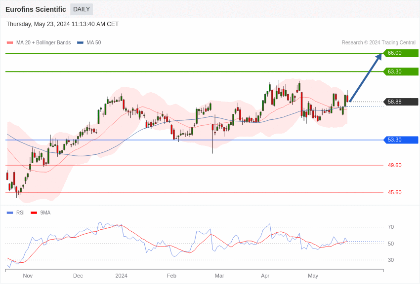 Si le titre se maintient au-dessus de ce support, il pourrait grimper à 63,30 euros, voire même 66 euros.