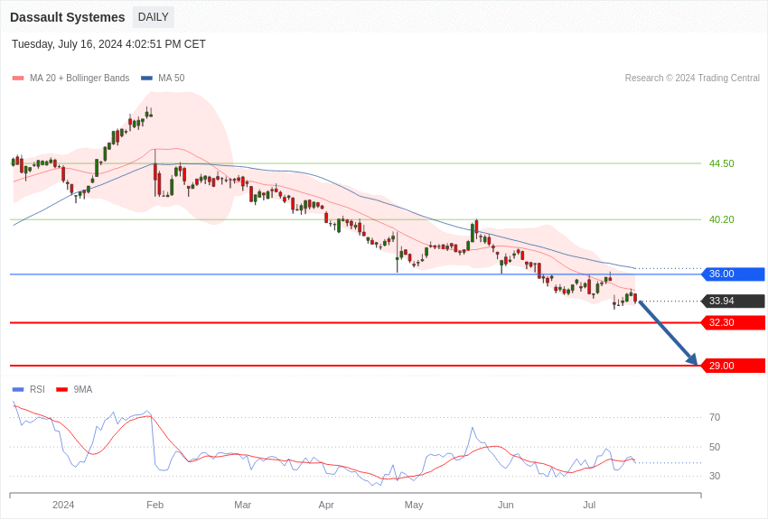 La tendance de l’action Dassault Systèmes est négative tant que le cours est sous les 36 euros.