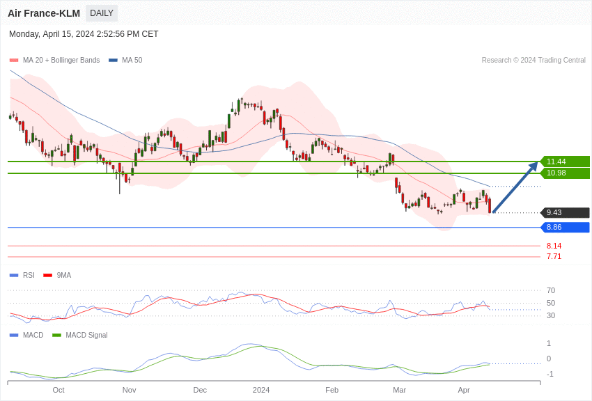 Le titre de la compagnie aérienne affiche une tendance graphique positive au-dessus de 8,86 euros.