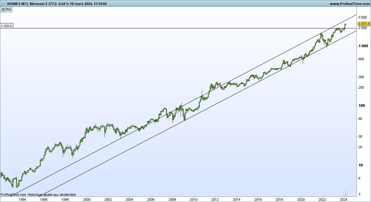 La société publiera son activité trimestrielle le 25 avril prochain et l’Assemblée générale des actionnaires aura lieu le 30 avril. Le dividende annuel a été fixé à 15 euros (+15%), dont 3,50 euros ont déjà été versés en février. L’action a progressé de 35% depuis un an, de 316% en cinq ans et de 891% (!) en dix ans (hors dividendes).